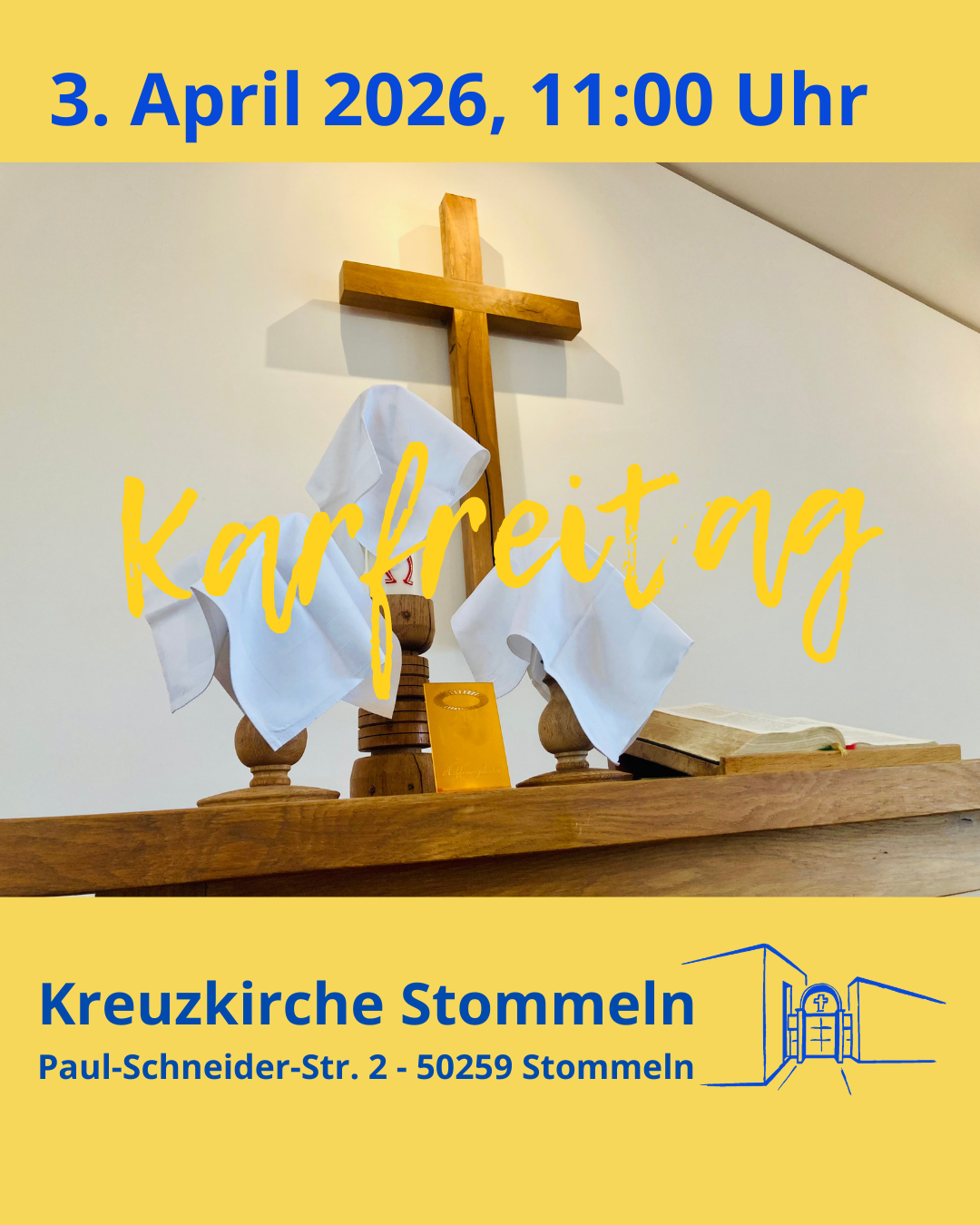 Wir laden herzlich zu den Gottesdiensten an Karfreitag und in der österlichen Zeit ein. Karfreitag Freitag, 3. April | 9:30 Uhr | Gnadenkirche Pulheim Gottesdienst