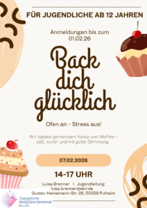 Du hast Lust auf Süßes? Dann komm doch gerne zu „Back dich glücklich“. Mit guter Stimmung backen wir gemeinsam Kekse und Muffins in bester Gesellschaft. Wenn es ein Rezept gibt, was deiner Meinung nach unbedingt gebacken werden soll, schick es Luisa gerne zu.